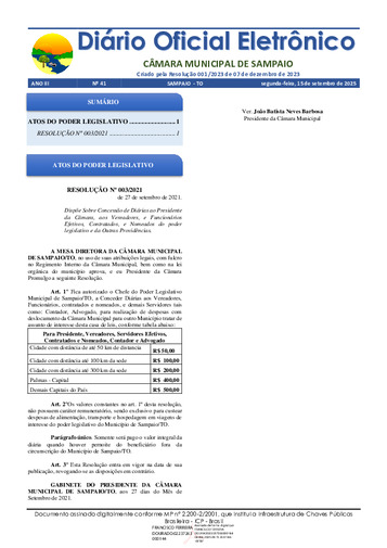 Câmara Municipal de Sampaio (TO) conquista selo PRATA em ranking nacional de transparência
